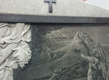 Мы оформили последнее место захоронения. Добили портрет, набили эпитафию и вырубили надпись.